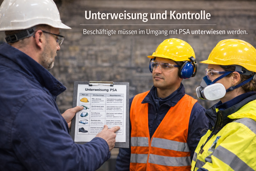 Beschäftigte müssen vor der Verwendung persönlicher Schutzausrüstung im richtigen Umgang, in der Anwendung und in den Schutzfunktionen unterwiesen werden. Die Unterweisung stellt sicher, dass die PSA korrekt verwendet wird und ihre Schutzwirkung zuverlässig entfalten kann.